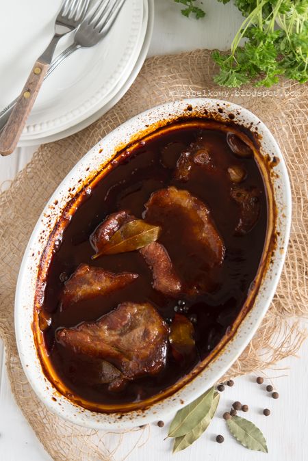 Mezcle todos los ingredientes restantes (deje los dientes de ajo, las hojas de laurel y la pimienta de Jamaica enteros) y vierta la salsa resultante sobre la carne. Cubre el plato con una tapa o papel de aluminio. Poner en un horno precalentado a 180 grados y hornear durante 1,5-2 horas, hasta que la carne esté tierna.