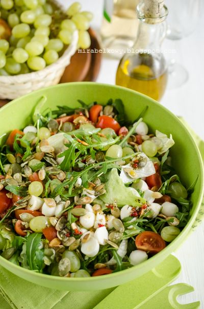 ENSALADA CON RUCOLA, UVAS Y MOZZARELLA