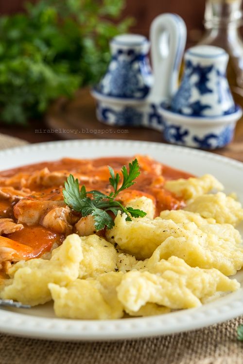 Nokedli es una especie de albóndigas muy popular en Hungría, perfecta como complemento para varios tipos de guisos o p. ej. pollo pimentón. Es un equivalente húngaro de los alemanes y austriacos. spaetzli (botín) – se hacen de la misma manera. Para su preparación, lo mejor es usar un colador de metal especial con orificios grandes y redondos. Desafortunadamente, no tengo un colador de este tipo en mi cocina (todavía …), así que simplemente pongo las bolas de masa en el agua hirviendo con una cuchara. Los fideos salieron un poco más grandes de lo que deberían, pero el sabor era el mismo;)