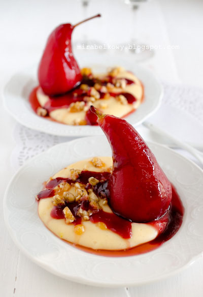 Las peras cocidas en vino son un postre bastante popular. Tuve la oportunidad de comerlos una vez, pero hasta ahora no los he preparado. En el futuro, sin embargo, sin duda sucederá;)