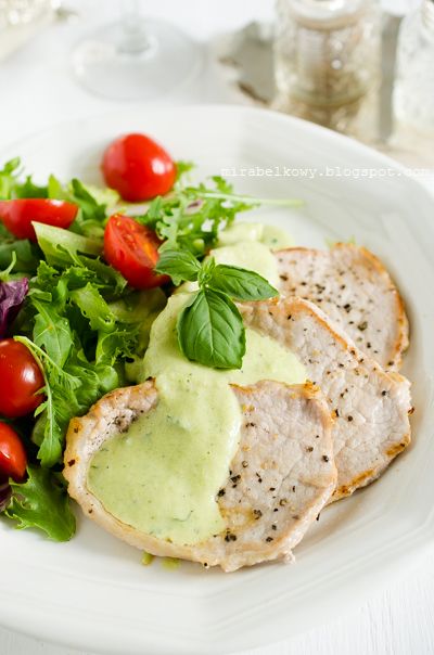 Escalopes aparentemente normales, pero gracias a la salsa de calabacín adquieren una cara completamente nueva. La salsa retorcida con albahaca y jugo de limón es muy sabrosa y, aunque delicada y cremosa, no sabe nada blanda. Sin embargo, para obtener la estructura cremosa de la salsa, fue necesario pasar el calabacín por un colador, y esto requirió un poco de esfuerzo. Sin embargo, aparte de eso, el plato es muy sencillo y rápido de hacer. Lo recomiendo para un almuerzo de domingo 🙂